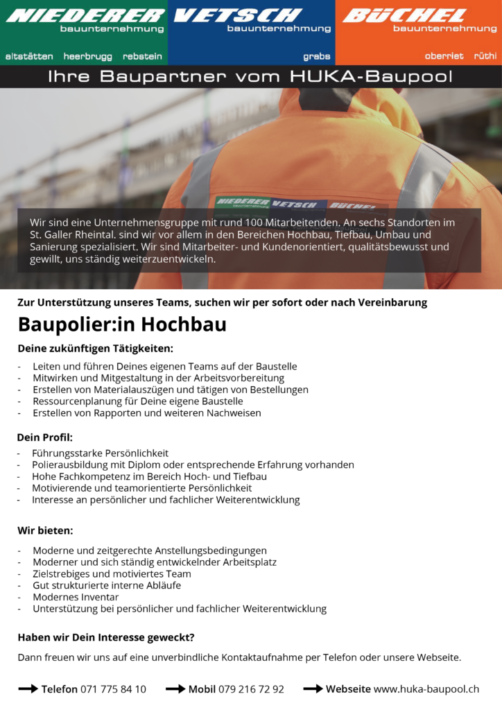 Am besten machst du für ein paar Tage eine Schnupperlehre direkt auf einer unserer Baustellen. So erfährst du am meisten über den Job und die Aufgaben als Maurer/in und lernst die Mitarbeitenden kennen. Gerne kannst du dich auch direkt via Onlineformular für eine Schnupperlehre oder Lehrstelle bewerben.
